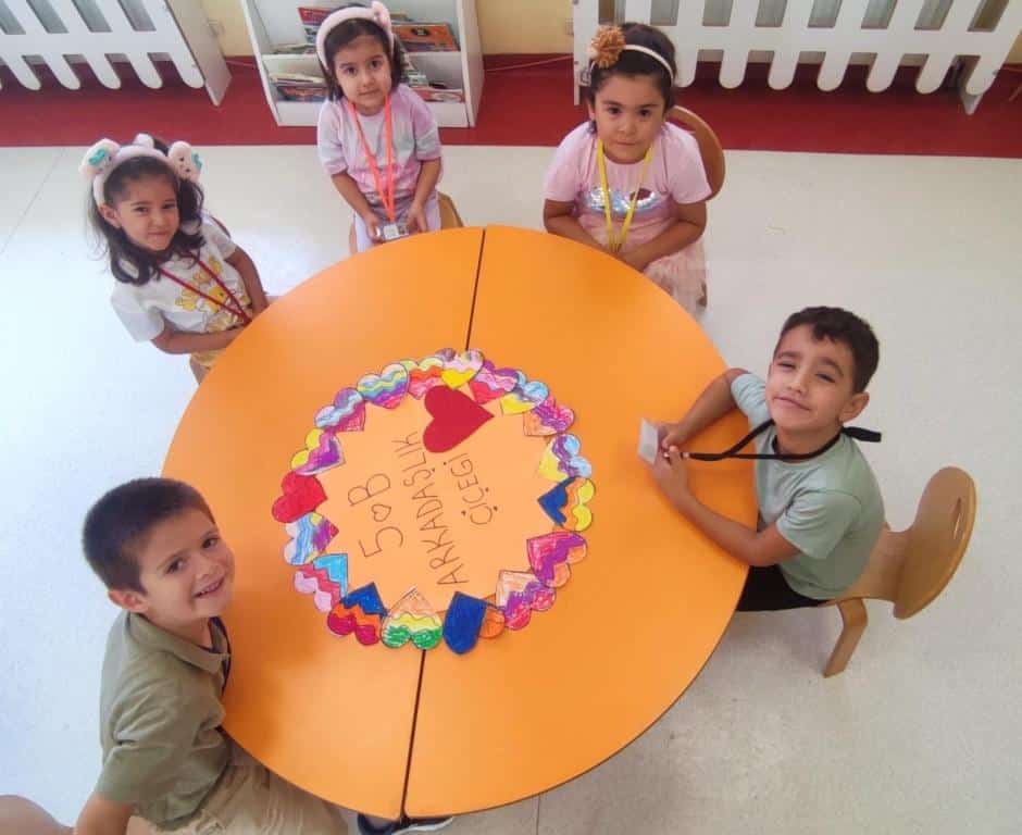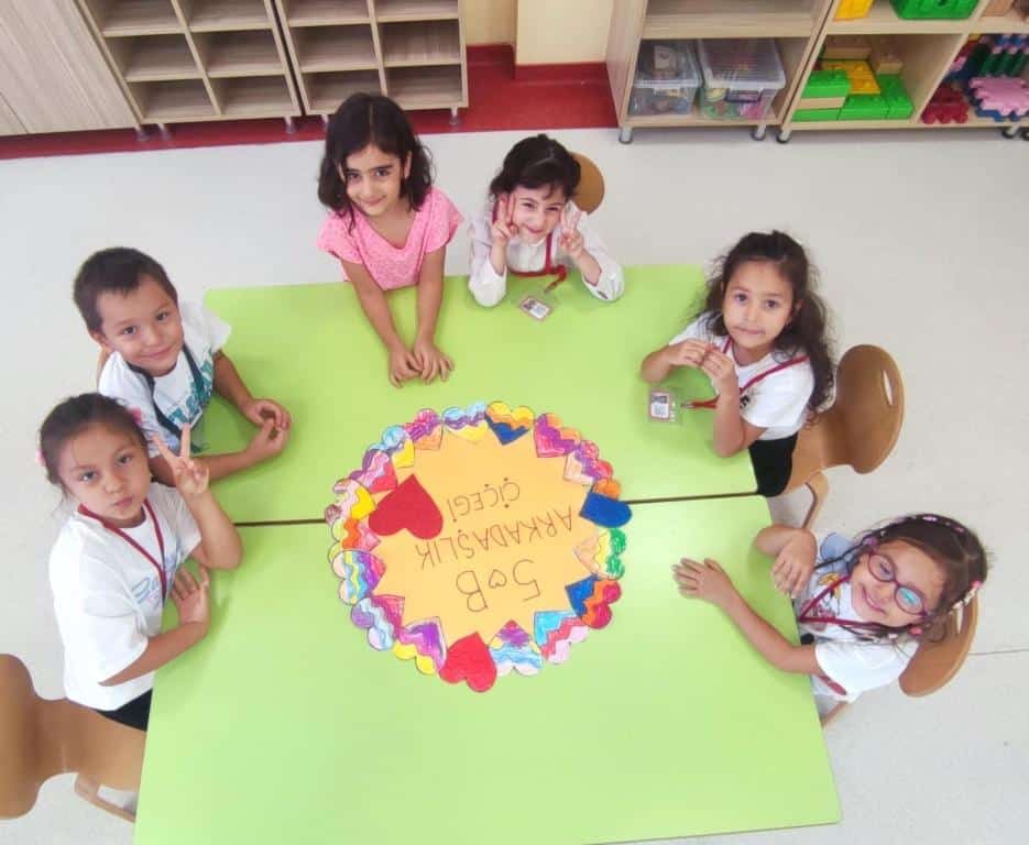 Bugün 5-B sınıfı olarak kalplerimizi bir araya getirdik ve Arkadaşlık Çiçeğimizi yaptık. Her bir yaprak, dostluğumuzu, sevgimizi ve paylaşmayı temsil ediyor.